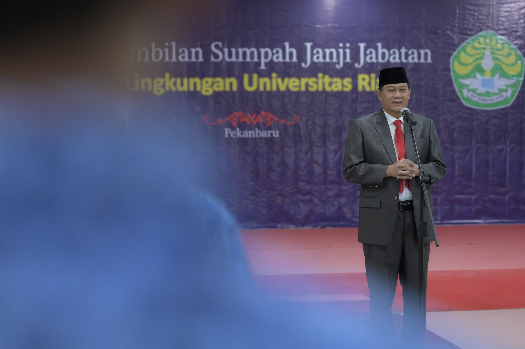 “Setelah pengambilan sumpah pada hari ini, melekatlah tanggung jawab yang diberikan kepada saudara selaku dosen dengan jabatan asisten ahli di lingkungan UNRI. Melalui hal tersebut, bagaimana mengakselerasi inovasi di level pendidikan tinggi melalui pelaksanaan Tri Dharma Perguruan Tinggi. Pertama, pedidikan dan pengajaran, Kedua, dosen wajib melaksanakan penelitian yang tidak hanya penelitian sesaat saja tetapi bagaimana diseminasi hasil penelitian tersebut bisa dimanfaatkan oleh masyarakat luas dalam bentuk jurnal yang diterbitkan dengan rumusan-rumusan untuk keperluan masyarakat,” ujar Rektor.