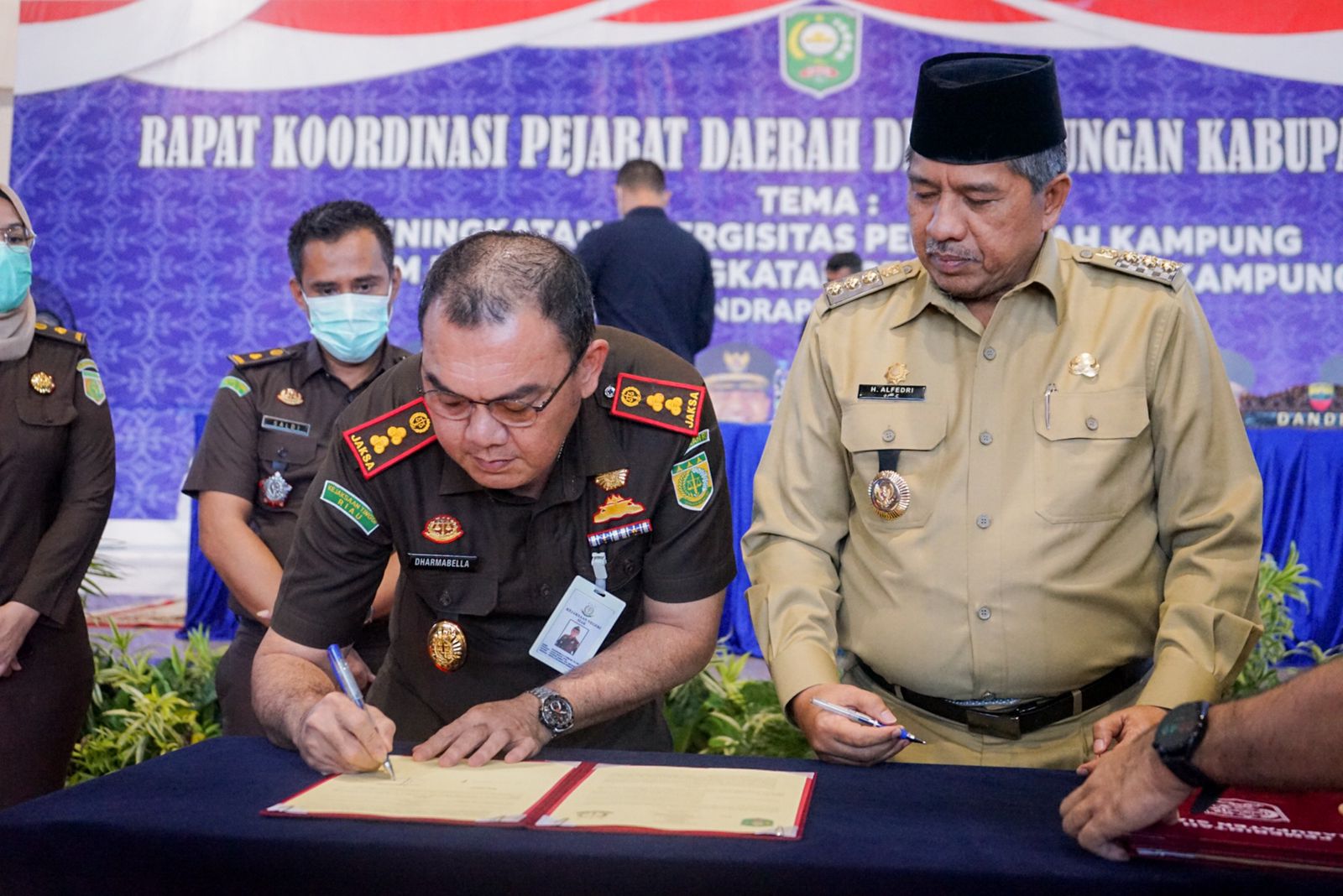 Bupati Alfedri dalam arahannya menyampaikan, sesuai dengan tema pada rakor "Peningkatan Sinergitas Pemerintah Kampung dalam Rangka Peningkatan Perekonomian Kampung", dalam dua tahun terakhir dihadapkan dengan Covid-19, berkat usaha bersama dari satgas hingga kampung Covid-19 dapat berkurang.