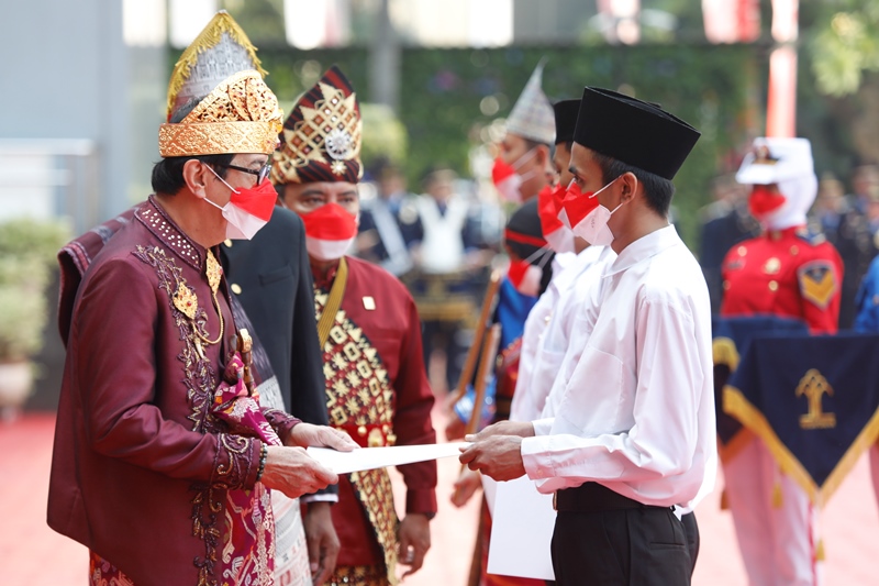 "Saya atas nama pemerintah RI mengucapkan selamat kepada WBP yang menerima remisi," Menteri Hukum dan Hak Asasi Manusia (Menkumham), Yasonna H. Laoly saat memberikan sambutan pada upacara bendera peringatan HUT ke -77 RI, Rabu (17/08/2022).