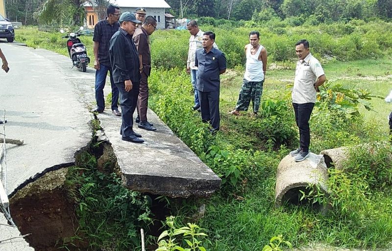 RIAUMANDIRI.CO - Ketua Komisi III DPRD Kuantan Singingi (Kuansing) beserta anggota meninjau kondisi jalan penghubung Kecamatan Pangean – Benai, tepatnya di Dusun I Desa Pembatang, Kecamatan Pangean yang amblas akibat sering diterpa arus air banjir, Selasa kemarin.
