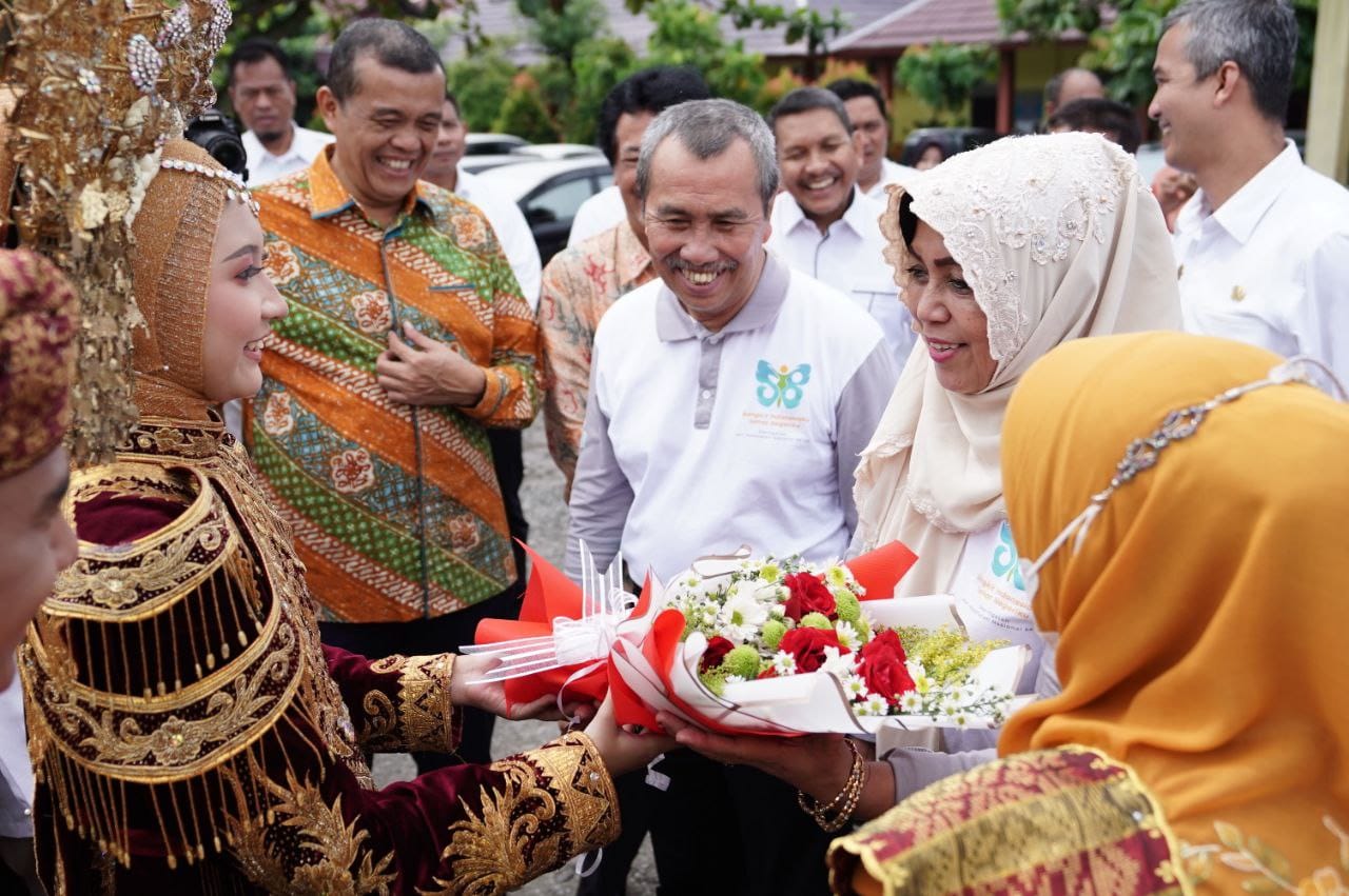 Gubri Syamsuar memberikan apresiasi terhadap pihak SMAN 5 Pekanbaru karena telah mempersiapkan penampilan yang berkaitan dengan kebudayaan.
