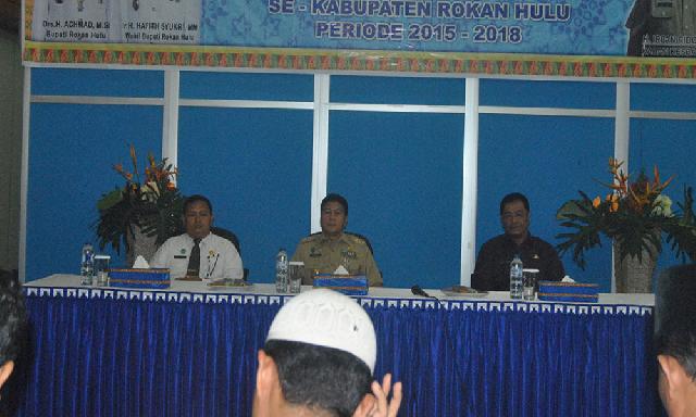 “Sistem koordinasi yang dilakukan tergantung masalahnya. Kalau hal itu menyangkut Kepolisian tentu koordinasinya dengan pihak Kepolisian. Kalau persoaloan sosial agama, koordinasinya dengan para ulama, persoalan pelayanan koordinasinya tentu kepada Pemerintah Daerah. Demikian seterusnya,” terang Bupati Rokan Hulu, Achmad.