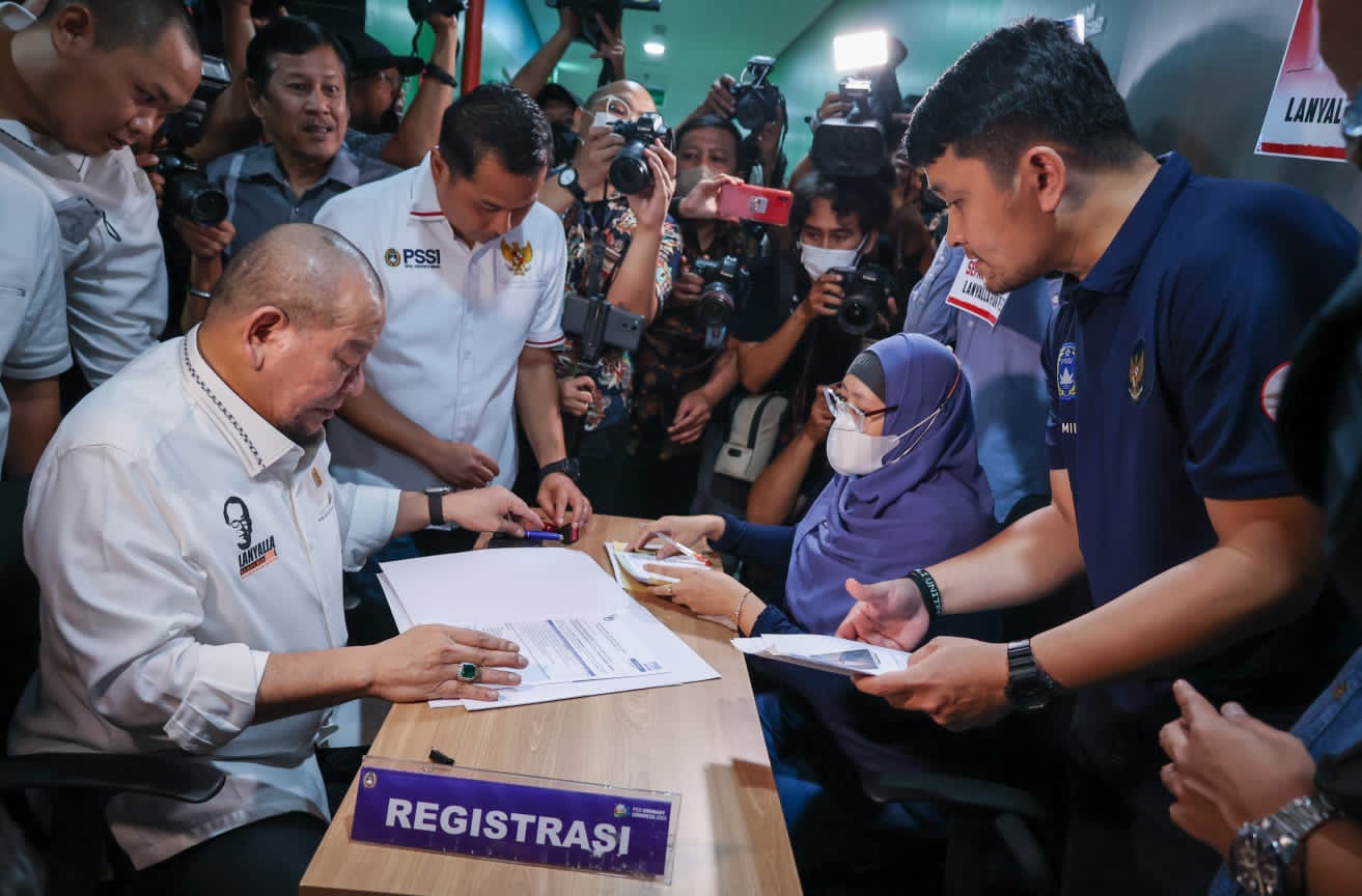 RIAUMANDIRI.CO - Ketua DPDRI AA LaNyalla Mahmud Mattalitti mendaftarkan diri sebagai calon Ketua Umum Persatuan Sepak Bola Seluruh Indonesia (PSSI), Jumat (13/1/2023).