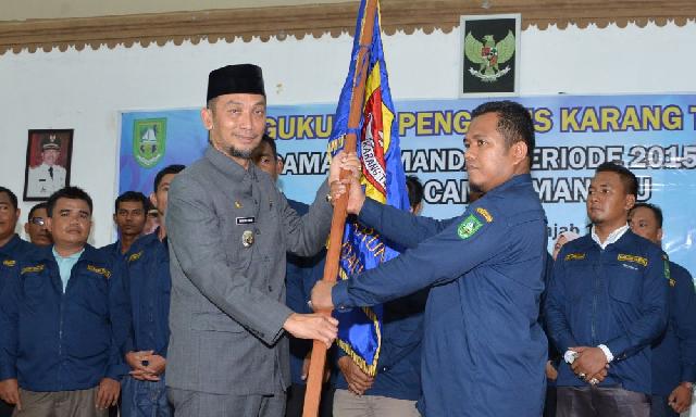 DURI (HR)- Pengurus dan Majelis Pertimbangan Karang Taruna Kecamatan Mandau masa bakti 2015-2015, resmi dikukuh Camat H Hasan Basri, selaku pembina, di Gedung Bathin Betuah, Sabtu (1/5). Pengukuhan itu juga dihadiri Bupati Bengkalis H Herliyan Saleh.