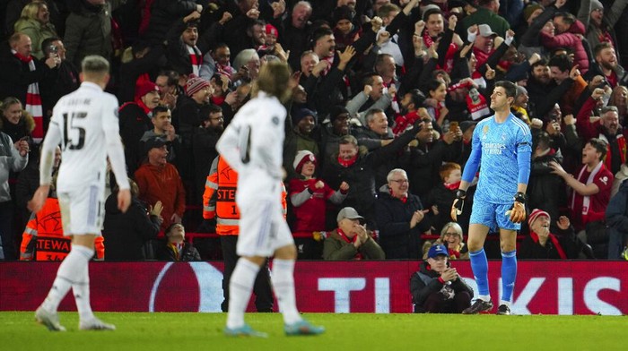 Darwin Nunez menjebol gawang Madrid pada menit keempat dengan tendangan backheel. Setelah itu, Mohamed Salah menggandakan keunggulan Liverpool menyambar penguasaan bola Courtois.