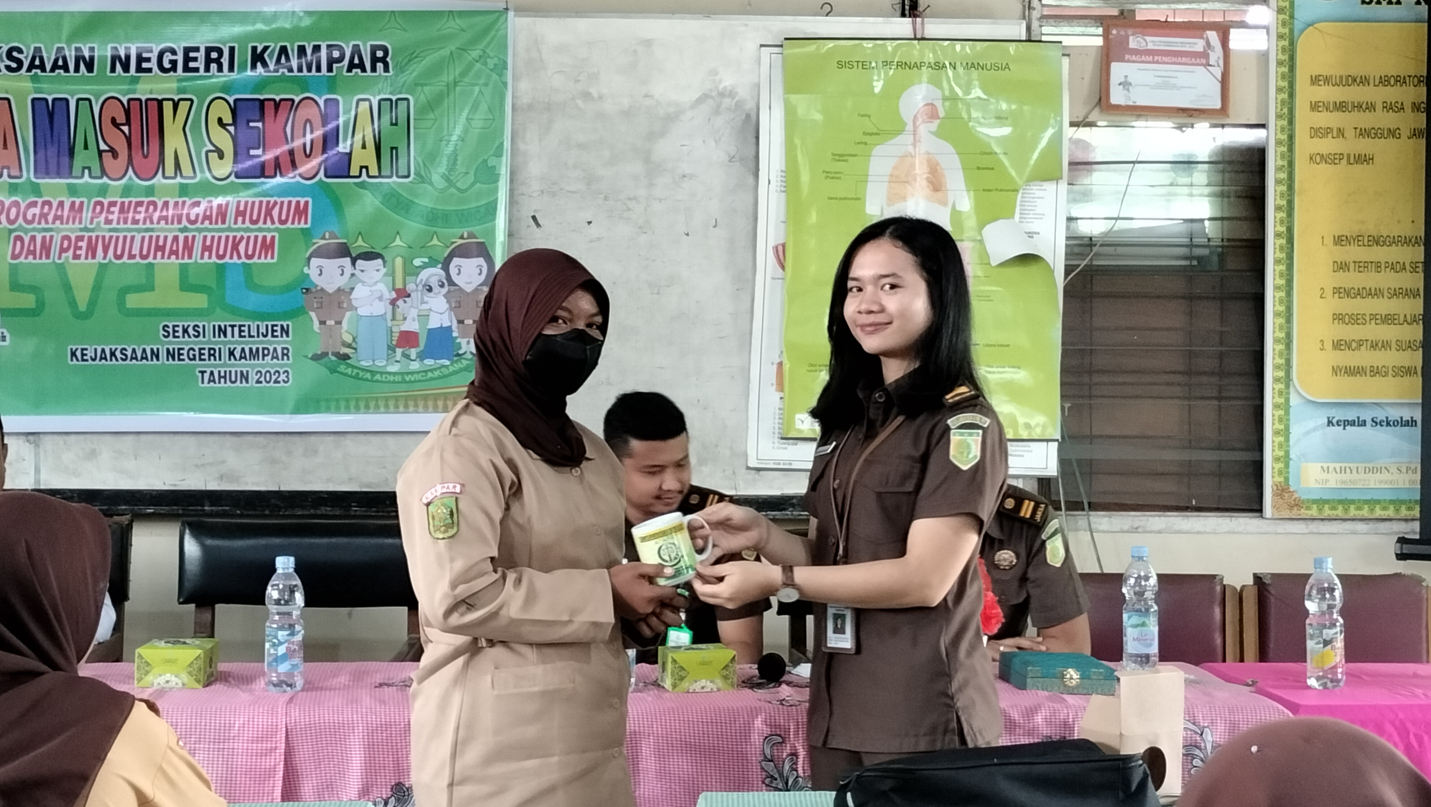 Kegiatan JMS juga diisi dengan sesi tanya jawab untuk para siswa/siswi, serta pemberian plakat dari Tim JMS Kejari Kampar kepada Kepala Sekolah SMPN I Salo.