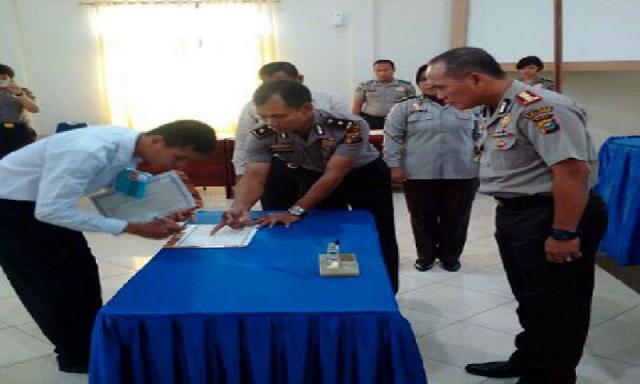 PANGKALANKERINCI (HR)-Penandatanganan pakta integritas dalam rangka penerimaan calon Taruna Akpol, Brigadir dan Tamtama Polri tahun 2015 dilaksanakan di aula Teluk Meranti, Polres Pelalawan, Senin (4/5). Hal ini merupakan sebagai bentuk komitmen moral.