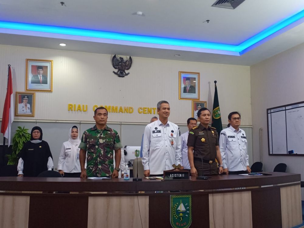 Turut hadir secara langsung Gubernur Riau (Gubri), Syamsuar di gedung Sasana Bhakti Praja. Secara virtual turut hadir Asisten II Setdaprov Riau, M. Job Kurniawan beserta jajaran Forkopimda Provinsi Riau di Riau Command Center, Rabu (3/5/2023).