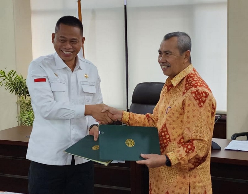 RIAUMANDIRI.CO - Gubernur Riau, Syamsuar, menandatangani nota kesepakatan atau Memorandum of Understanding (MoU) dengan Kepala Badan Standardisasi Instrumen Pertanian (BSIP) Kementerian Pertanian, Fadjry Djufry, di Kantor BSIP, Kementerian Pertanian, Jakarta, Rabu (12/7/2023).