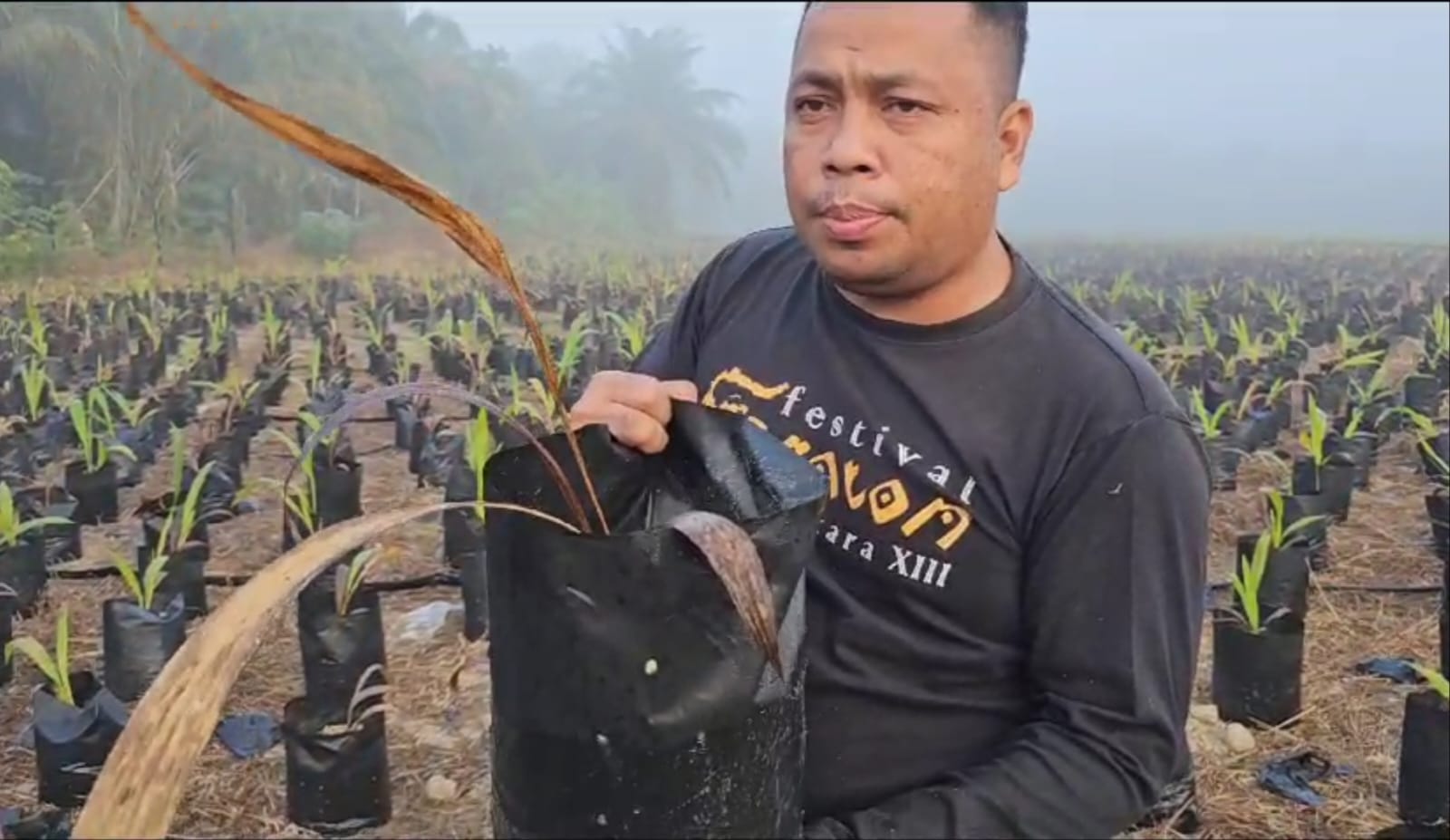 Ketua DPRD Kabupaten Baharuddin ketika meninjau lokasi pembibitan yang berada di Sore Dua sangat menyayangkan melihat kondisi bibit sawit yang sudah banyak yang mati.