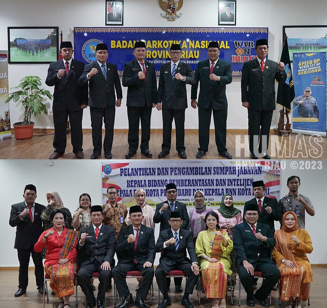 Riaumandiri.co - Kepala Badan Nasional Narkotika Provinsi (BNNP) Riau melantik 3 orang pejabat utama dilingkungan BNNP Riau, Jumat (27/11).