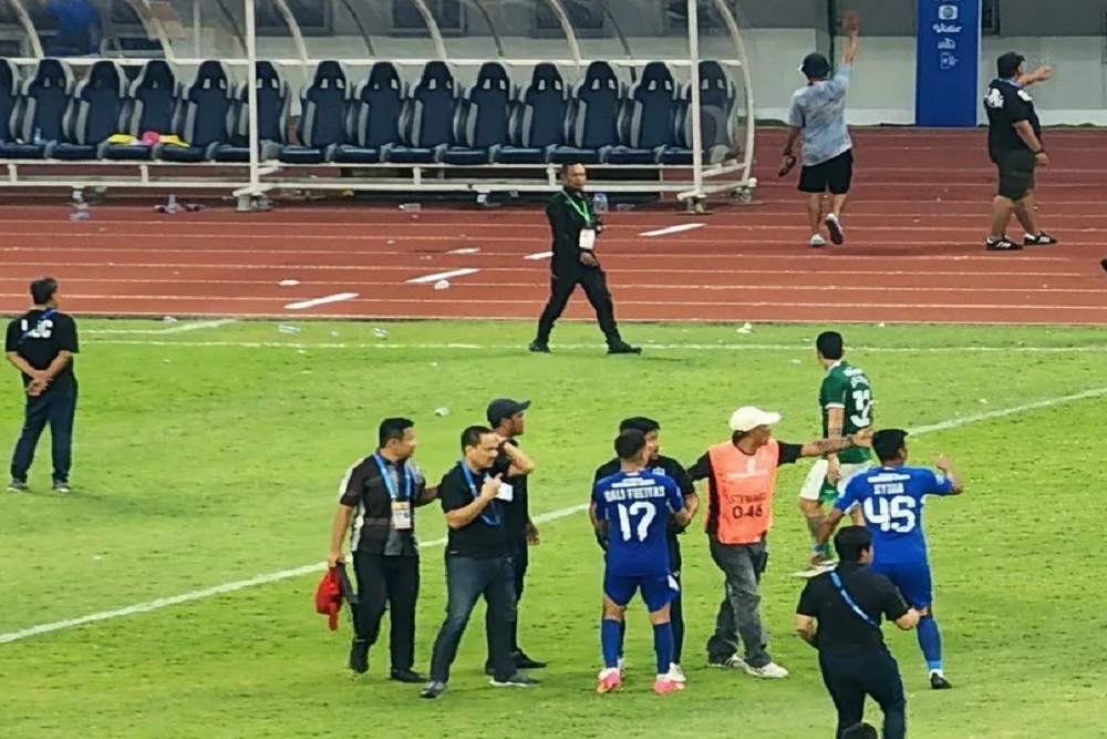 Sayangnya, pada menit ke-90, insiden memalukan terjadi ketika suporter kedua tim terlibat keributan di tribune stadion. Alhasil wasit harus menghentikan pertandingan.