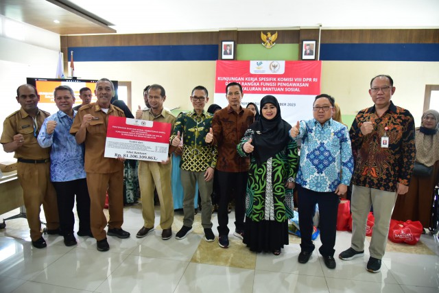 Dalam Kunjungan tersebut, Komisi VIII DPR RI juga menyerahkan secara simbolis bantuan sosial kepada Keluarga Penerima Manfaat (KPM), bantuan berupa sembako, kursi roda dan lainnya.