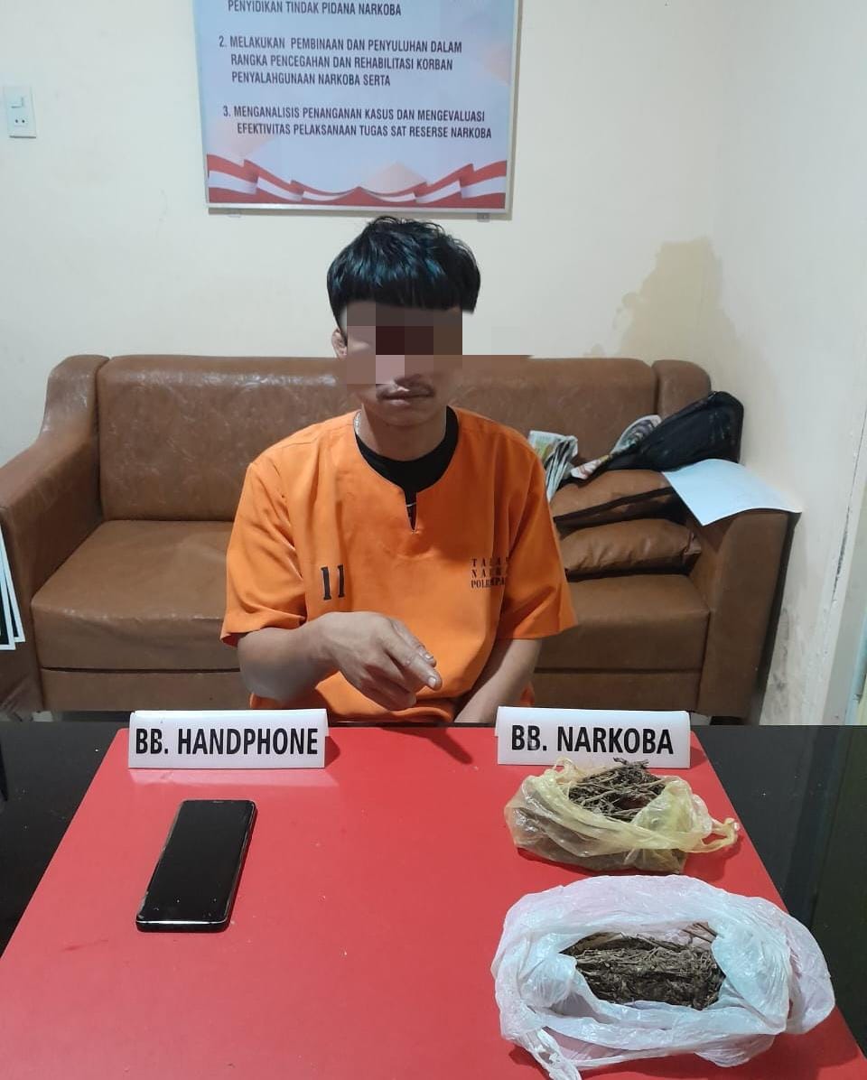 Dari penangkapan pelaku PU ini, polisi berhasil amankan sejumlah barang bukti. Yaitu, 2 paket narkoba jenis daun ganja kering yang dibungkus dengan kantong plastik warna putih dan kuning, dengan berat bruto 73.30 gram.