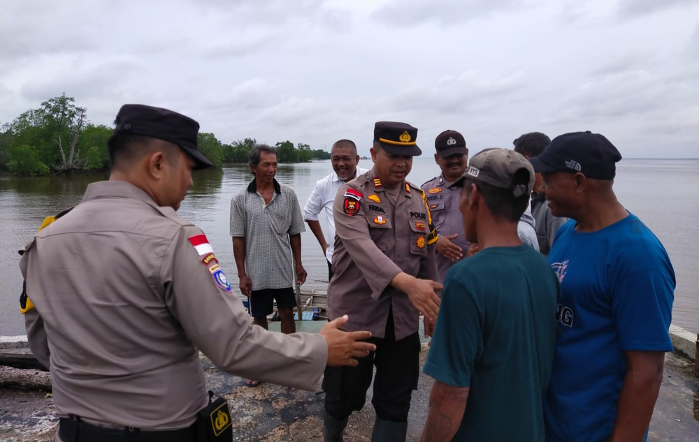 Kali ini Kapolsek Bengkalis AKP Faisal SH dan jajaran turun menemui wargadi Desa Kelapa Pati Laut yang sebagian besar bermata pencarian sebagai nelayan di sepanjang pesisir pantai Pulau Bengkalis yang berhadapan langsung dengan Negeri Jiran Malaysia, Rabu (27/12/2023).