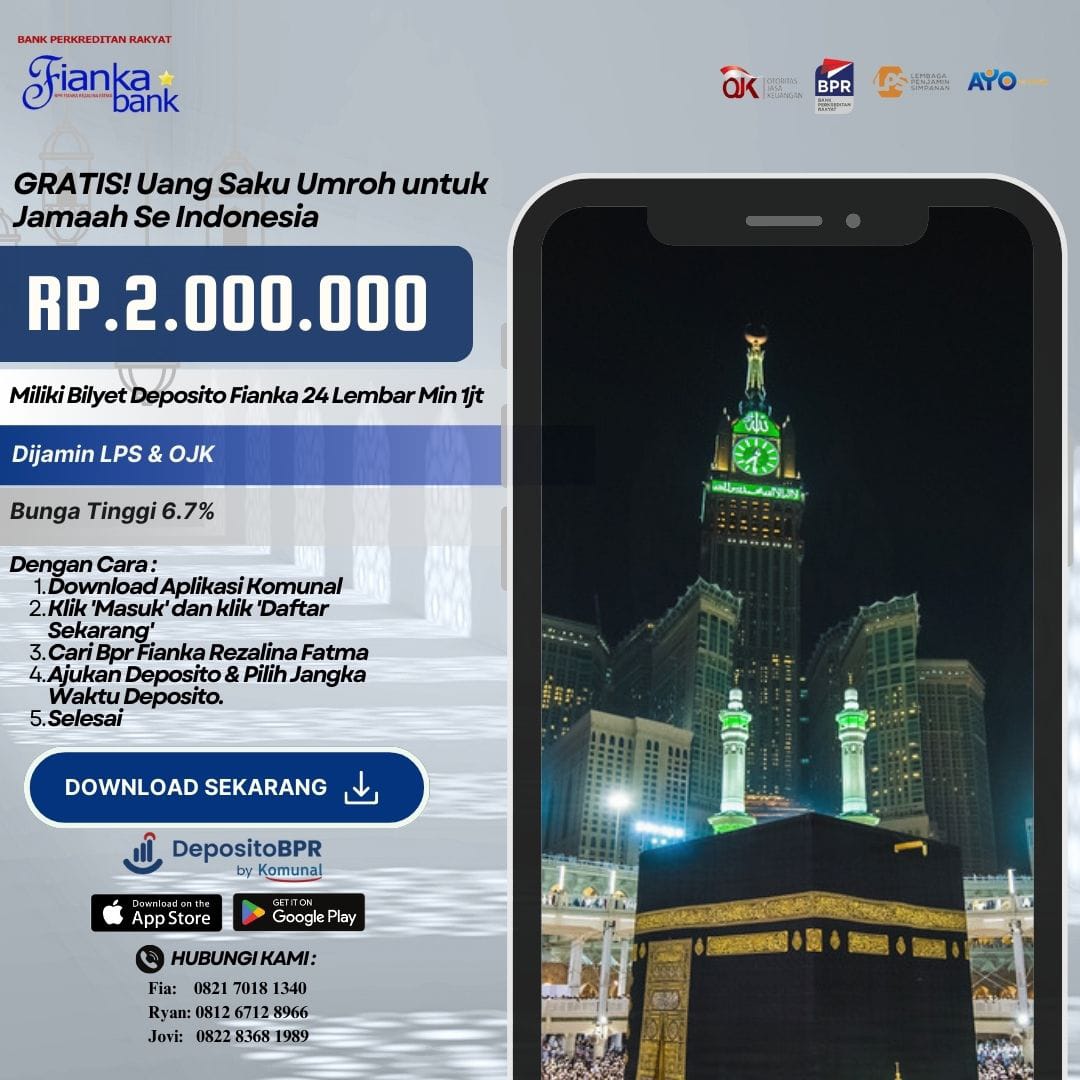 BPR Fianka sudah mengalokasikan dana untuk para jamaah umroh agar lebih semangat untuk menuju Masjidil Haram, yang mana, BPR Fianka memberikan kemudahan untuk jamaah yang sungguh-sungguh menabung hingga keberangkatan. Salah satu cara yang diberikan adalah dengan melalui deposito di aplikasi BPR Fianka by komunal.