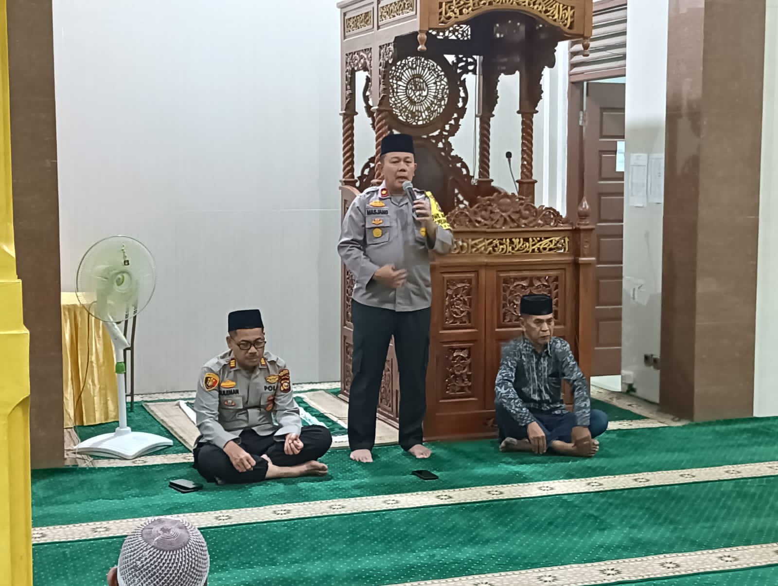 Riaumandiri.co - Kapolsek Pekanbaru Kota Kompol Masjang Effendi melaksanakan salat Isya berjamaah di Masjid Darul Amal Kelurahan Sumahilang, Selasa (9/1). Usai salat Isya, Kapolsek bersilaturahmi dengan tokoh agama dan masyarakat setempat.
