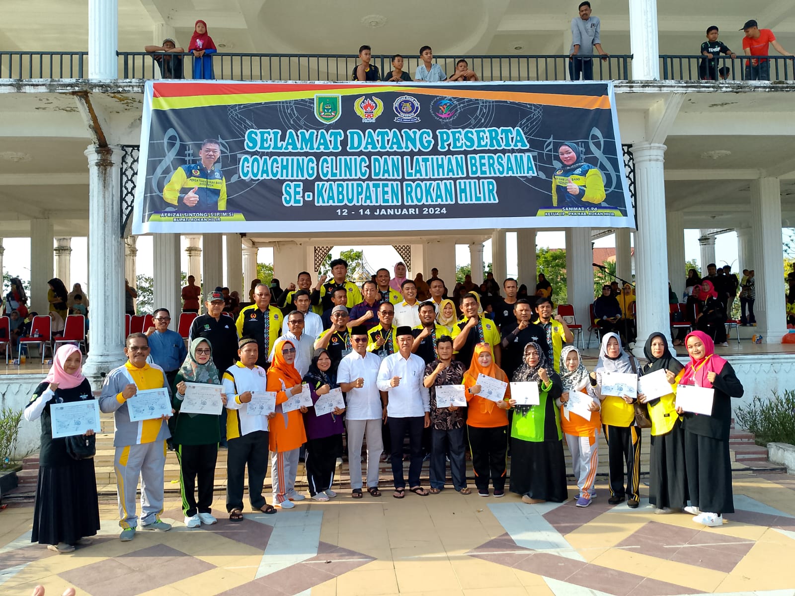 Hadir dalam penutupan Penutupan latihan bersama Marching Band kepala Dinas pariwisata, pengurus KONI, ketua panitia coaching clinic dan Latihan bersama Drum band dan Marching band se Kabupaten Rokan Hilir, narasumber Reza dari SUMUT, Persatuan Drum Band Indonesia (PDBI) Riau dan Jambi dan Kabid IKP Diskominfotik Rokan Hilir.