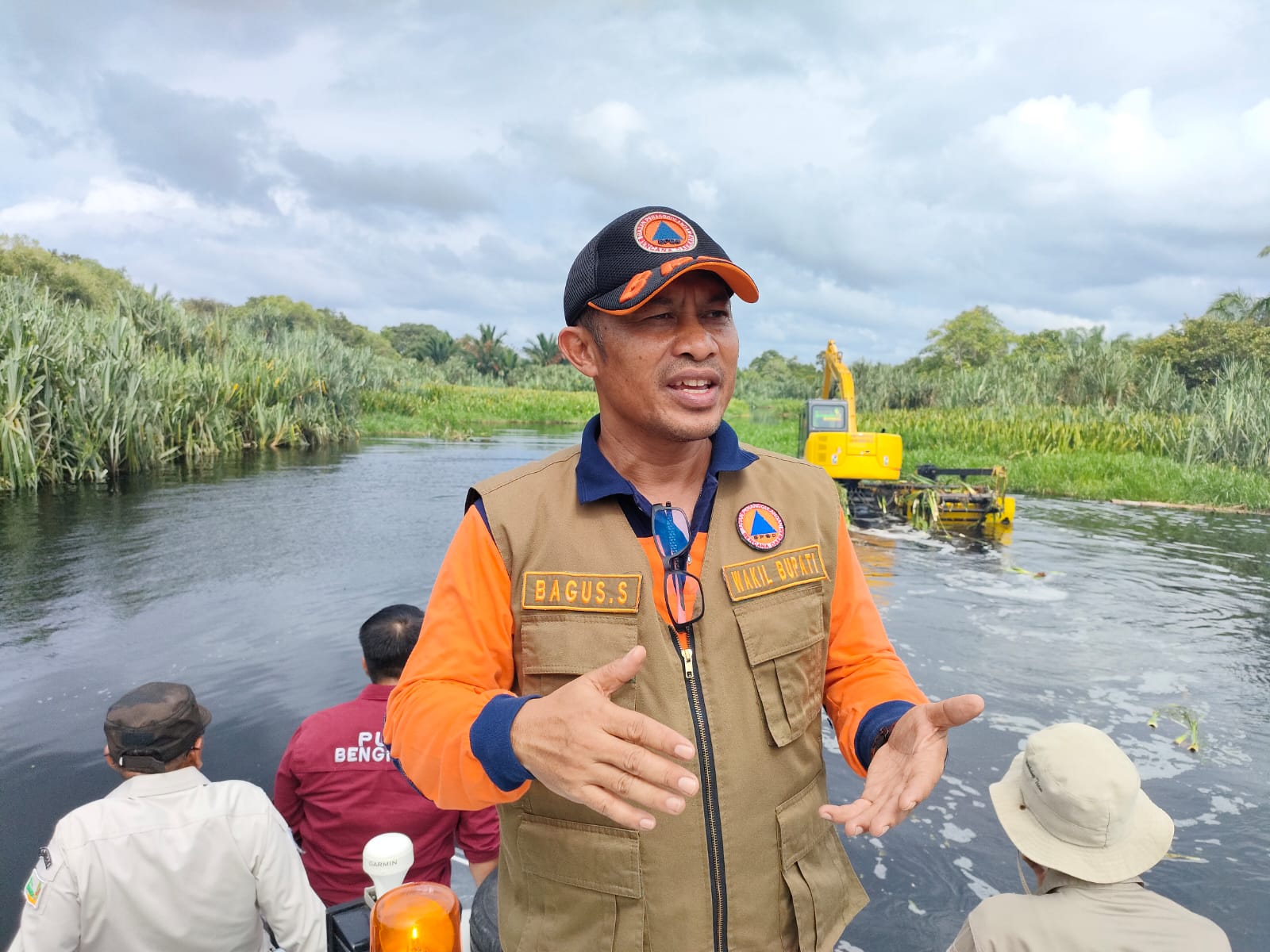 Hal itu langsung disampaikan Wabup Bengkalis Bagus Santoso saat turun langsung ke lapangan melihat alat berat Excavator Amfibi PC80 dengan melakukan normalisasi sungai Siak Kecil.