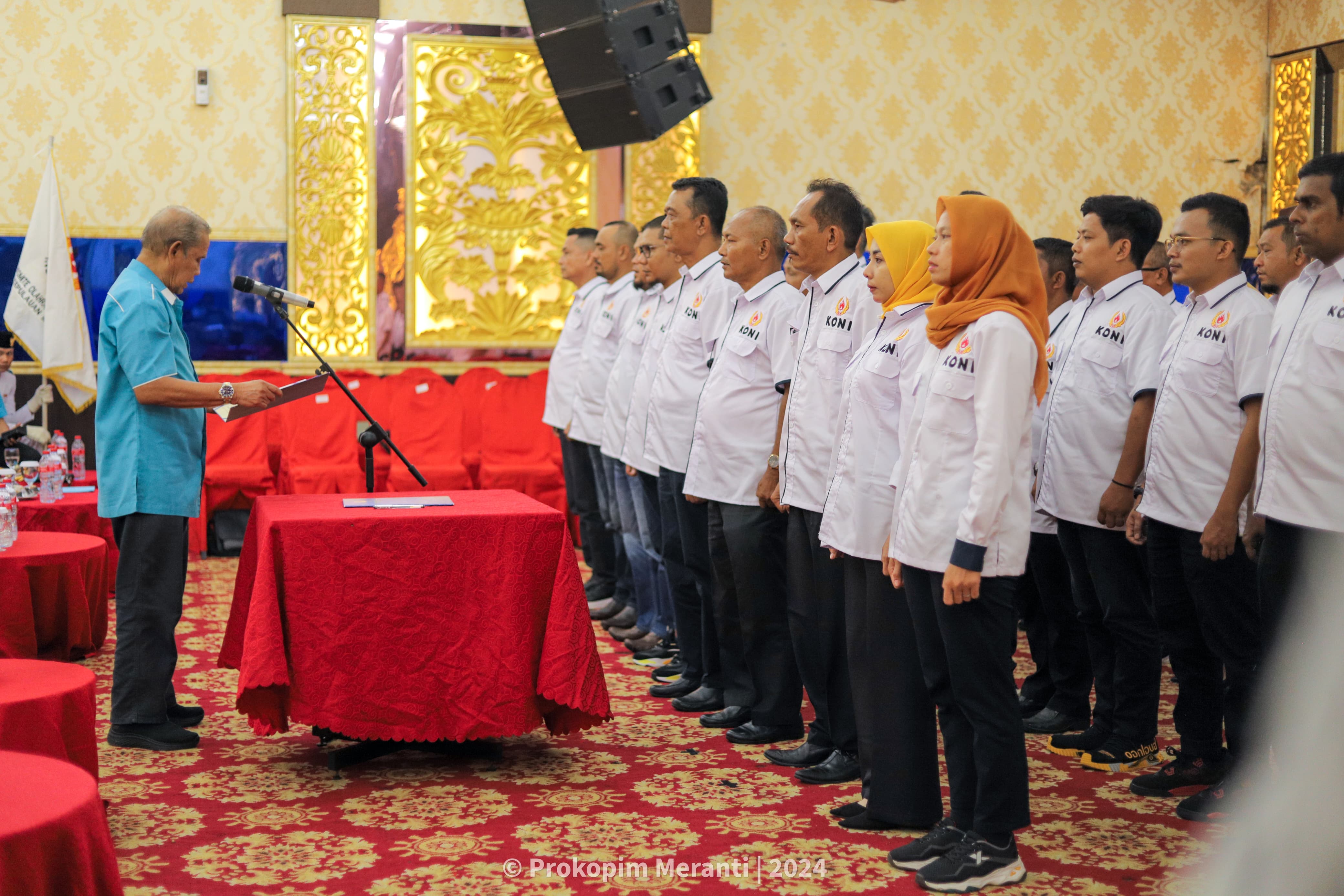 Mengusung tema 'Bangkit Dan Wujudkan KONI Kabupaten Kepulauan Meranti Sebagai Rumah Besar Olahraga Yang Sinergi, Inovasi dan Berprestasi' pengurus KONI Kabupaten Kepulauan Meranti masa bakti 2024-2028 resmi dilantik dan dikukuhkan oleh Ketua KONI Provinsi Riau, H Iskandar Husein, di Ballroom Grand Meranti Hotel Selatpanjang, Rabu malam (28/2).