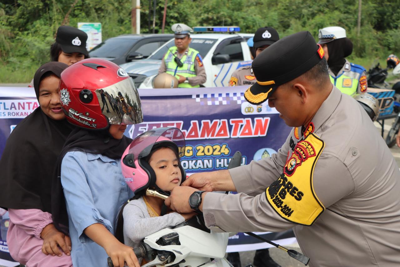 Kapolres Rohul Bagikan Helm Gratis Saat Ops Keselamatan Lalulintas 2024
