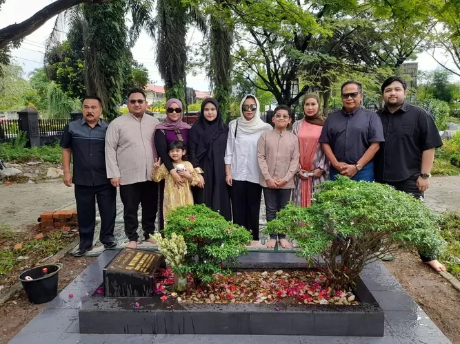 Kemudian rombongan bergerak menuju makam orang tua H.Basrizal Koto di Masjid Al-Arafah yang terletak di Jalan Taman Karya, Pekanbaru.