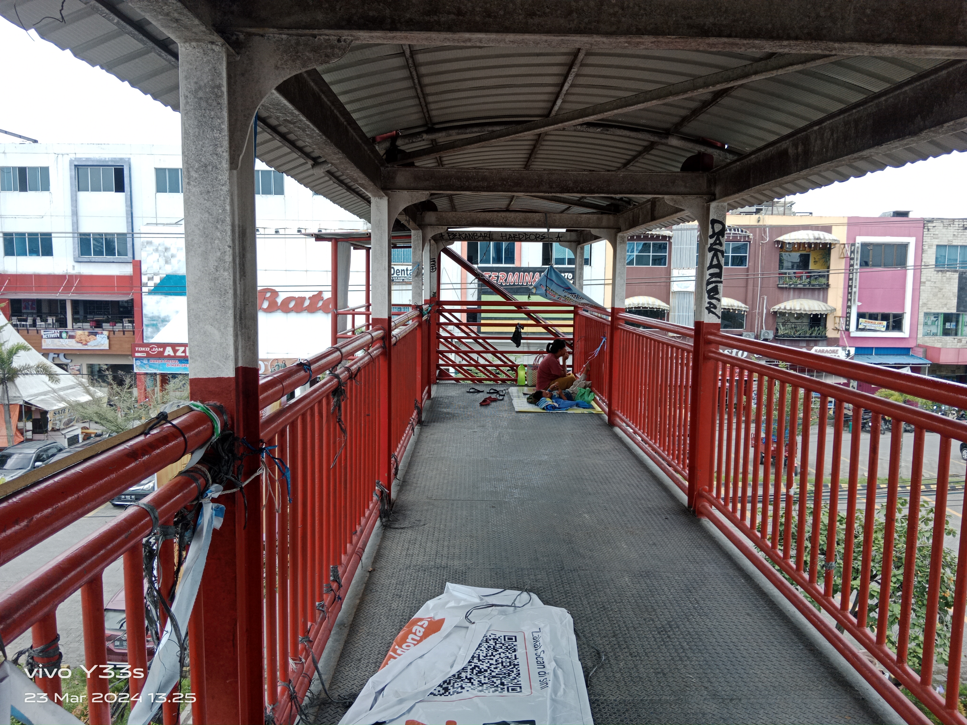Pantauan Haluan di lokasi, akhir pekan kemarin, masih terdapat warga yang menjadikan fasilitas menyebrang untuk pejalan kaki itu sebagai tempat tidur mereka.