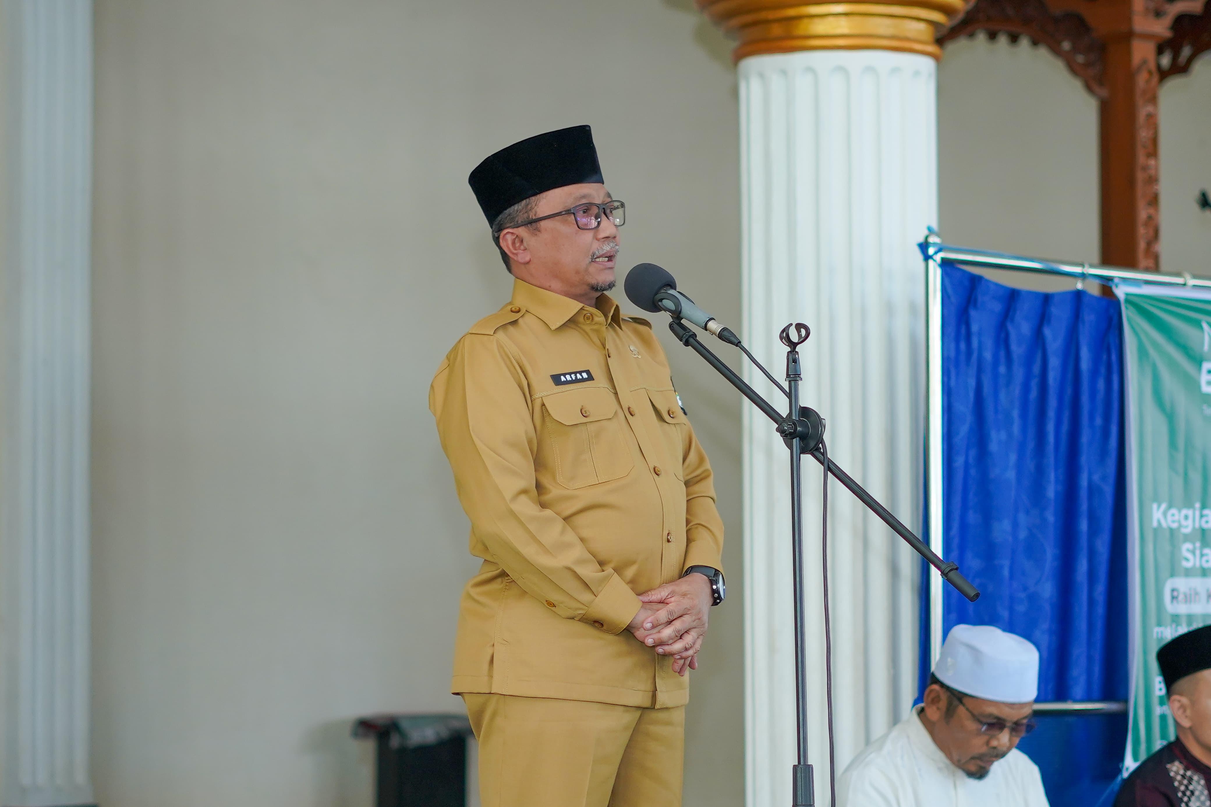 Riaumandiri.co - Sekretaris Daerah (Sekda) Siak, Arfan Usman hadiri Gerakan Masyarakat (Gemar) Siak Berzakat ke- II dan pendistribusian zakat tahap 1 tahun 2024 di Masjid Raya Amirul Mukminin Kelurahan Sungai Apit, Kecamatan Sungai Apit, Senin (1/4).