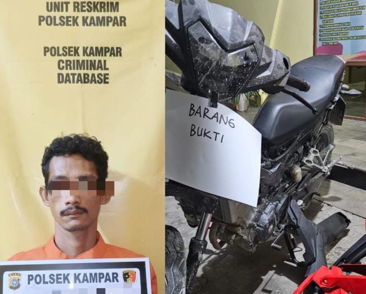 ED ditangkap setelah aksinya mencuri sepeda motor terekam CCTv di Gudang Mozart Plafon CV Dudi Mekar Jaya, Dusun IV Tanjung Berulak Desa Tanjung Berulak, Kecamatan Kampar pada Rabu (20/3) sekitar pukul 17.44 WIB.