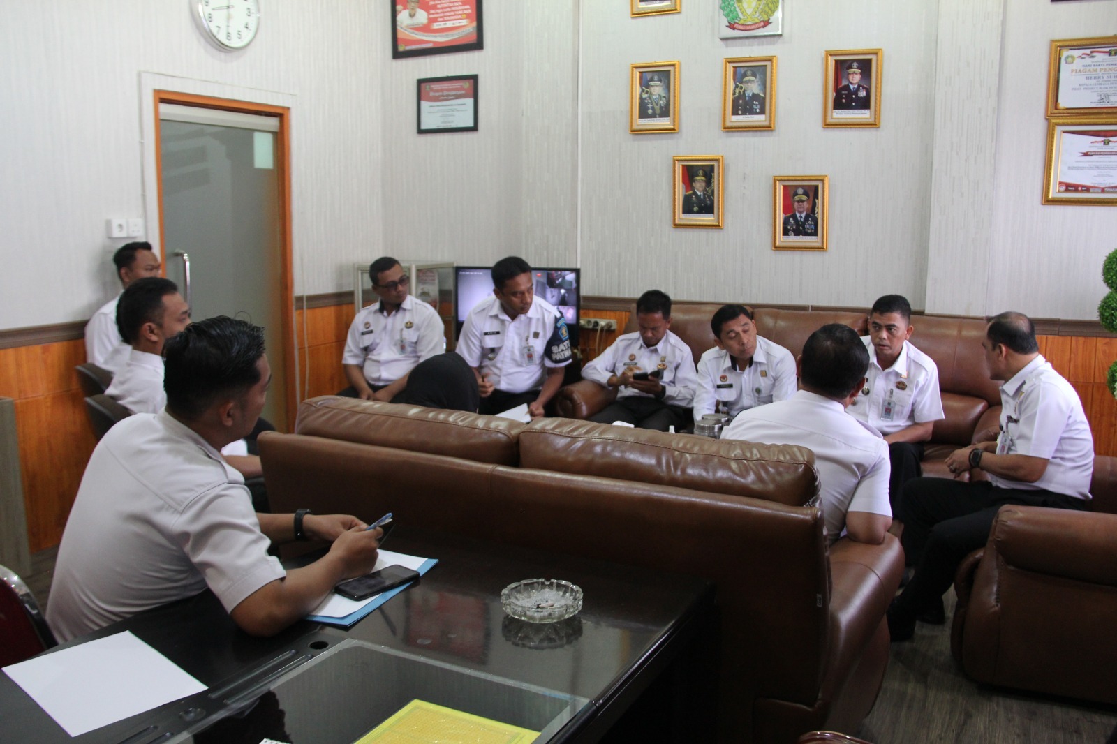 Seluruh pejabat struktural dikumpulkan di ruang kerjanya, selain evaluasi pelaksanaan kegiatan juga merampungkan rapat dinas dan membahas agenda kerja kedepannya.