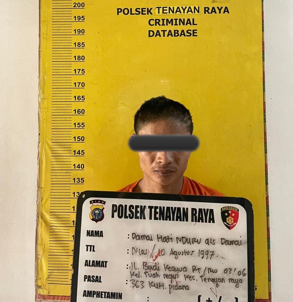 Kanit Reskrim Polsek Tenayan Raya Iptu Dodi Vivino menyebut bahwa yang bersangkutan merupakan pelaku yang telah melakukan pencurian di sebuah rumah yang berada di Jalan Budi Luhur Kelurahan Tuah Negeri, aksi itu terjadi pada Minggu (21/4) subuh.