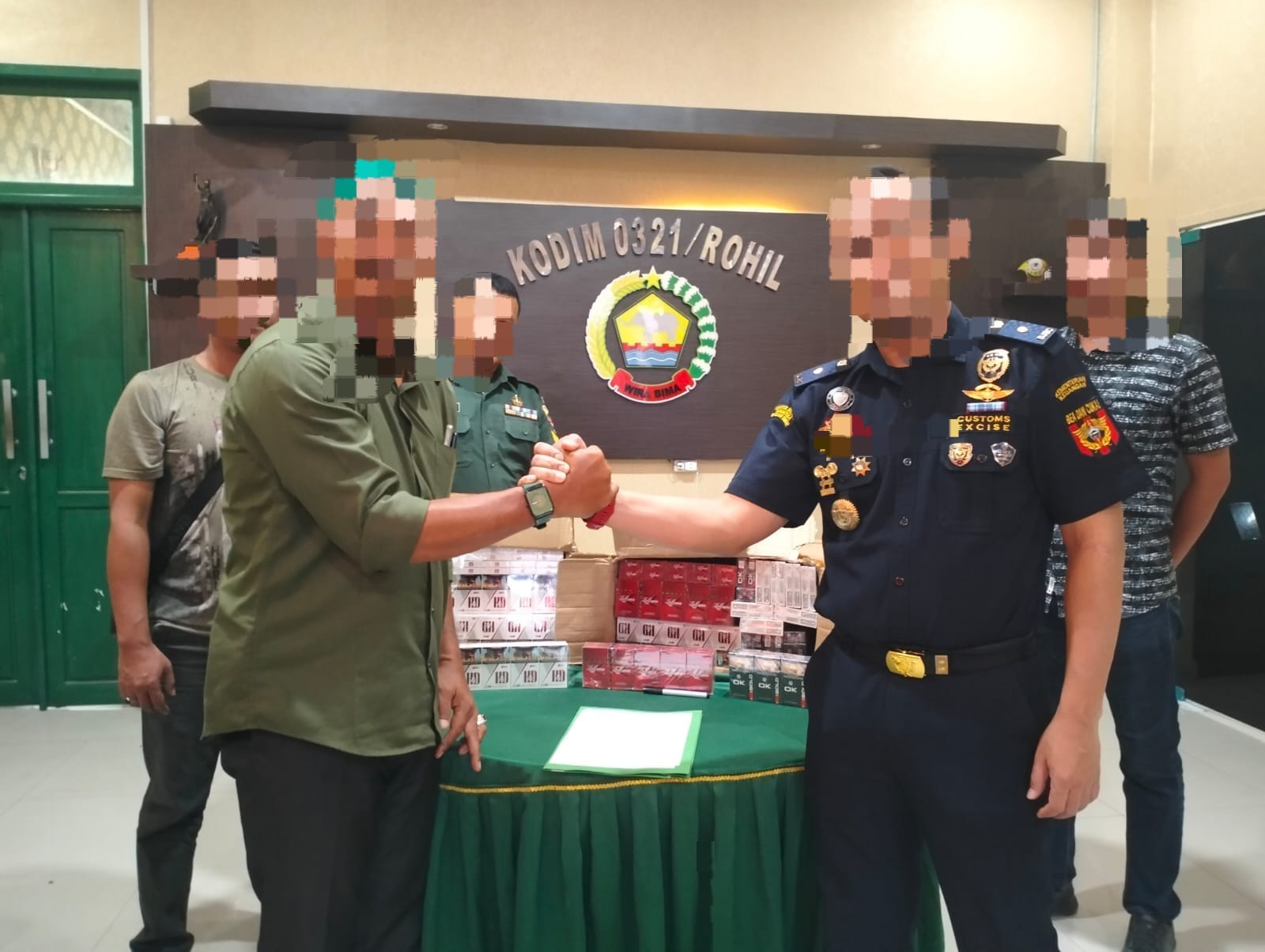 Kodim 0321Rohil Amankan Rokok Ilegal Diduga Milik Oknum Polisi