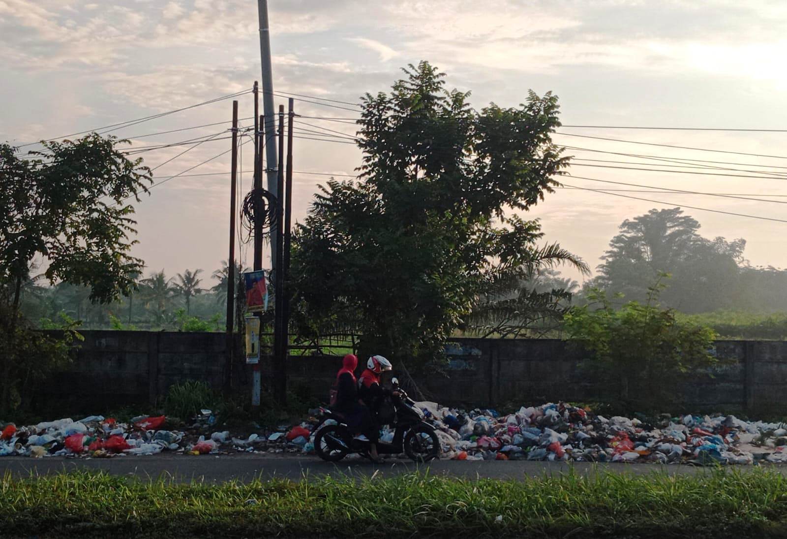 Mirisnya jejeran sampah terlihat pada bagian kiri dan kanan jalan tersebut hingga puluhan meter.