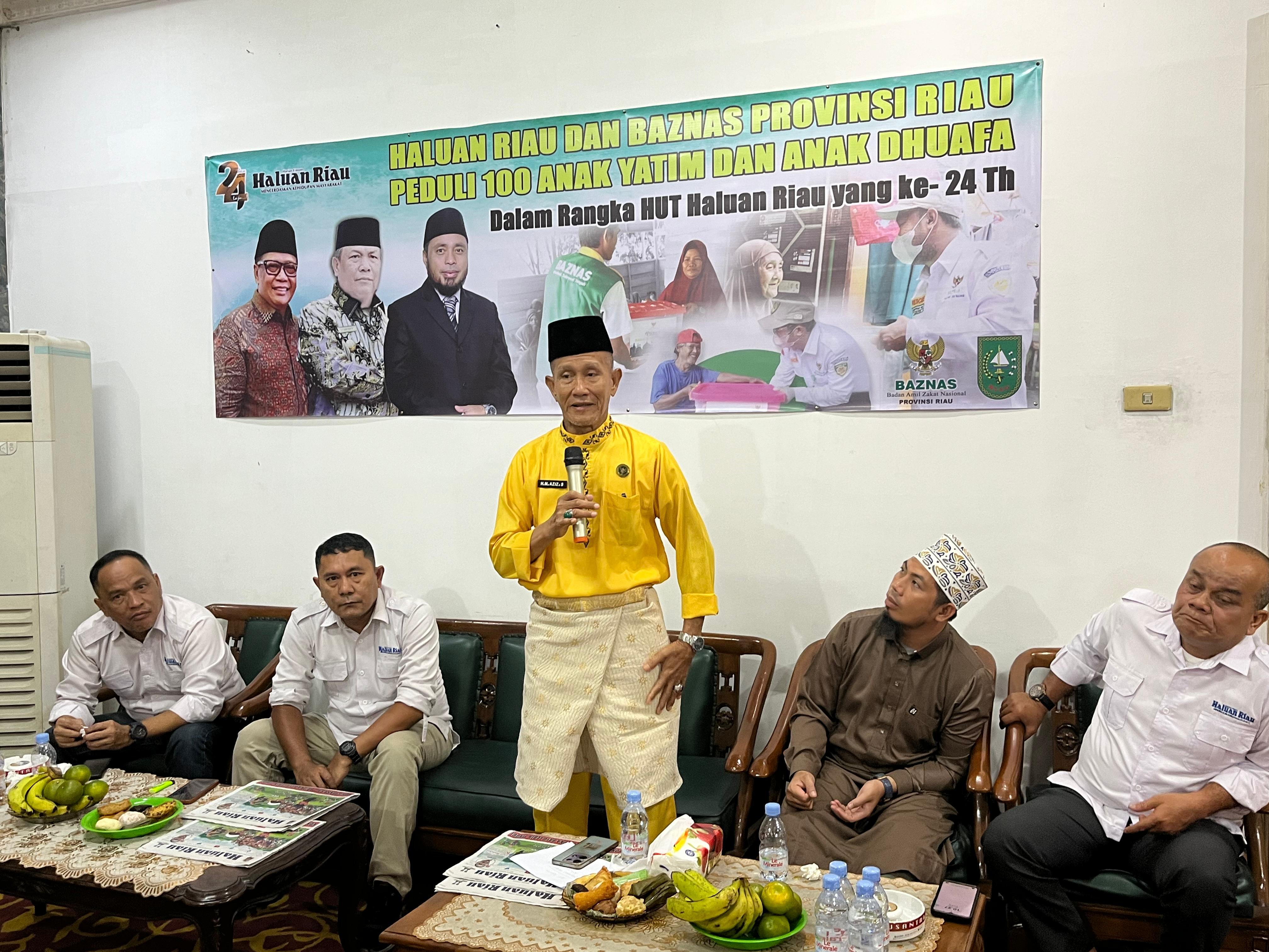 Hal ini diutarakan oleh Ketua Baznas Riau Masriadi Hasan melalui Wakil Ketua IV Drs M Aziz saat menghadiri perayaan Hari Ulang Tahun (HUT) Haluan Riau ke-24 tahun, acara ini berlangsung di Gedung Pers Haluan Riau Jalan Tuanku Tambusai, Kamis (1/8).