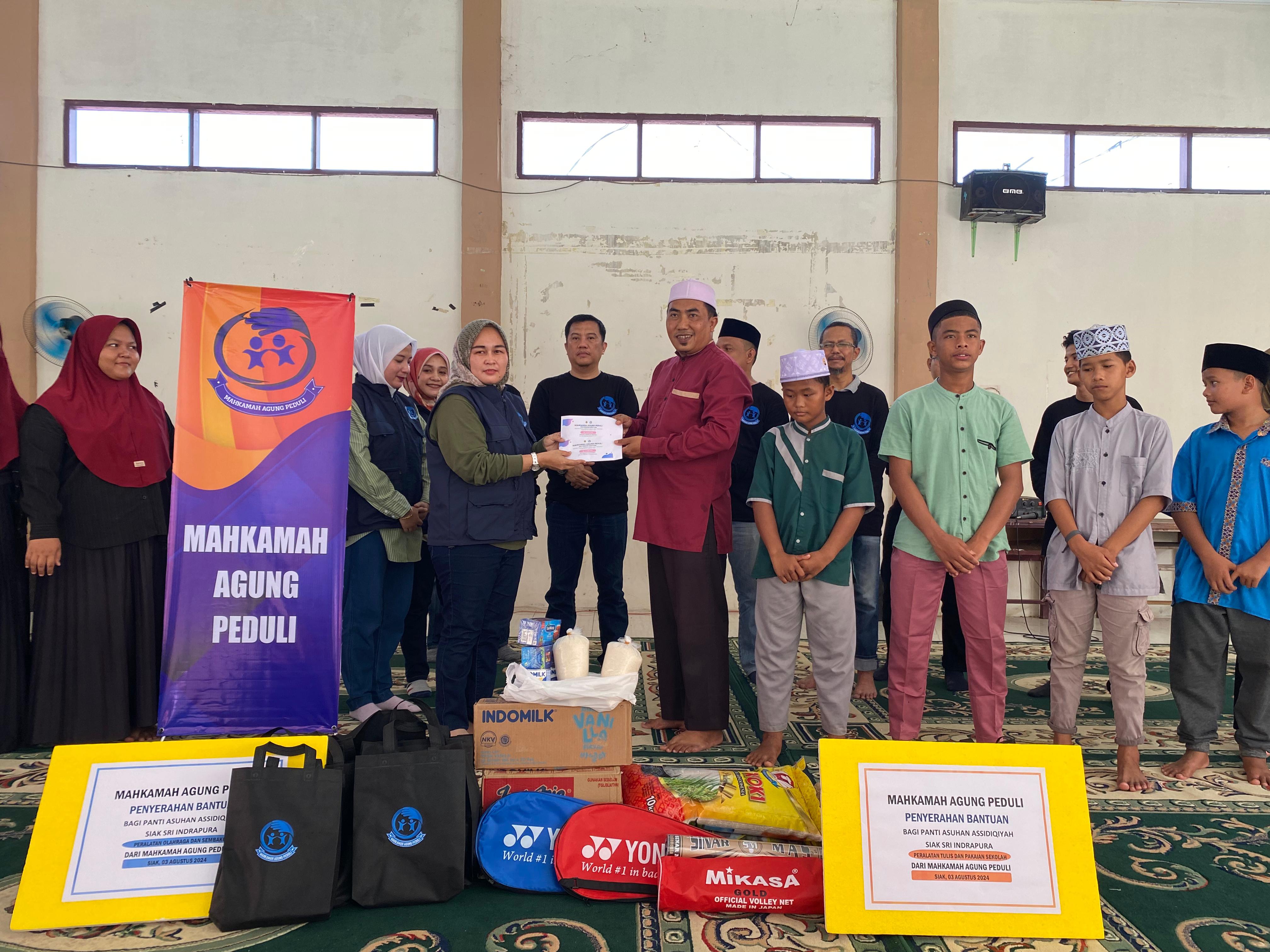 Riaumandiri.co - Mahkamah Agung melalui Mahkamah Agung Peduli (MA Peduli) menggelar bakti sosial dengan memberikan bantuan di Panti Asuhan Assidiqiyah Siak, Jalan Dr Sutomo Gang Panti Asuhan Kelurahan Kampung Dalam Kecamatan Siak Kabupaten Siak, berupa peralatan sekolah yang sangat dibutuhkan oleh anak-anak di Panti Asuhan tersebut.
