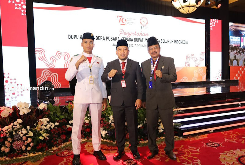 RIAUMANDIRI.CO - Jelang peringatan HUT RI ke-79, Wakil Bupati Siak, Husni Merza menerima duplikat Bendera Pusaka dari Ketua Badan Pembinaan Ideologi Pancasila (BPIP), Yudian Wahyudi. Penyerahan duplikat Bendera Pusaka tersebut berlangsung di Balai Samudra, Kelapa Gading, Jakarta Utara, Selasa (6/8/2024).