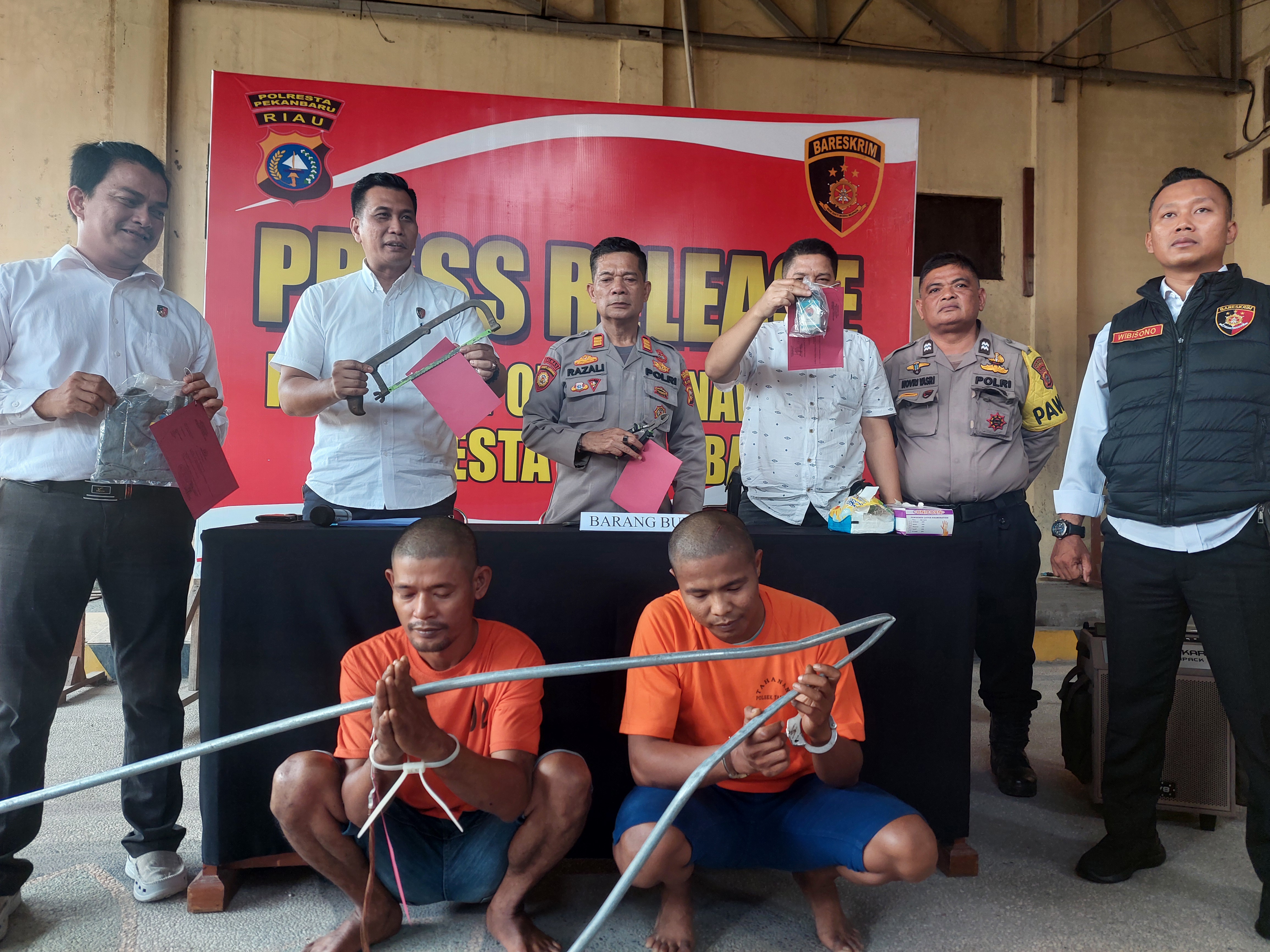 Riaumandiri.co - Pria inisial FA alias Uyun (27) dan DA alias Codoik (39) mendekam dalam sel tahanan Kepolisian Sektor (Polsek) Binawidya sejak Jumat (2/8), mereka diamankan warga Delima sebelum diserahkan ke pihak kepolisian.