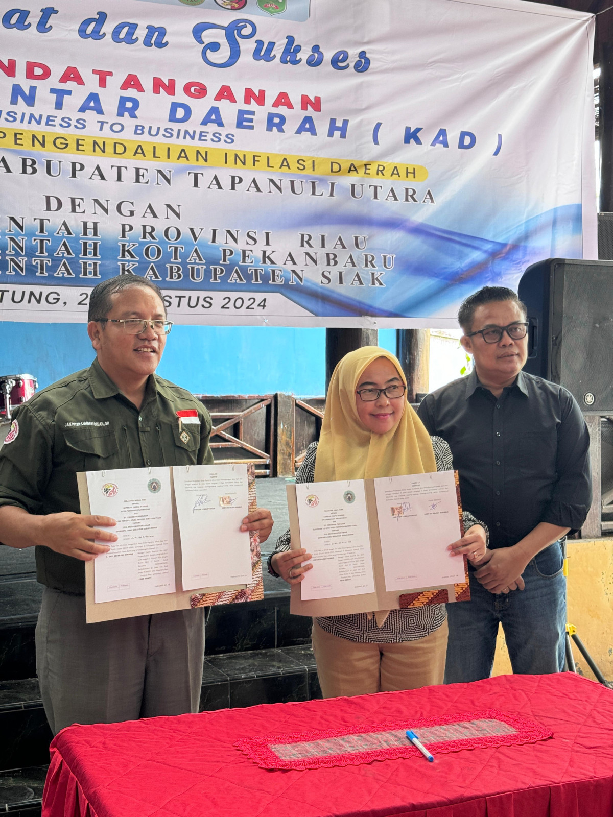 Pj Bupati Tapanuli Utara, Dimposma Sihombing juga menghaturkan terima kasih kepada jajaran Bank Indonesia yang telah mendukung terselenggaranya kerja sama antar daerah (KAD) dalam bentuk penyediaan pasokan cabai merah yang dilaksanakan PT. Perseroda Pertanian Kabupaten Tapanuli Utara dengan PT. Sarana Pangan Madani maupun bersama PT. Sarana Pembangunan Siak.