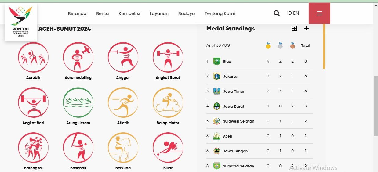 Riaumandiri.co - Kontingen Riau berada di puncak klasmen sementara PON XXI Aceh-Sumut, kini mengoleksi 8 medali dari seluruh cabor yang dipertandingkan.