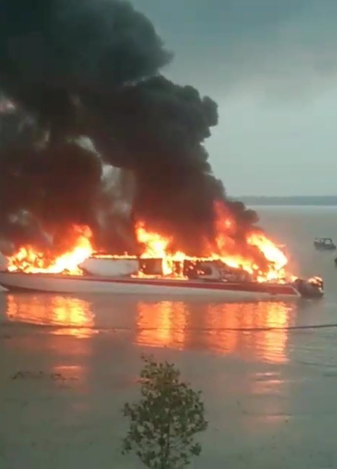 Speedboat Angkut Sayur dan Sembako Terbakar di Selat Air Hitam