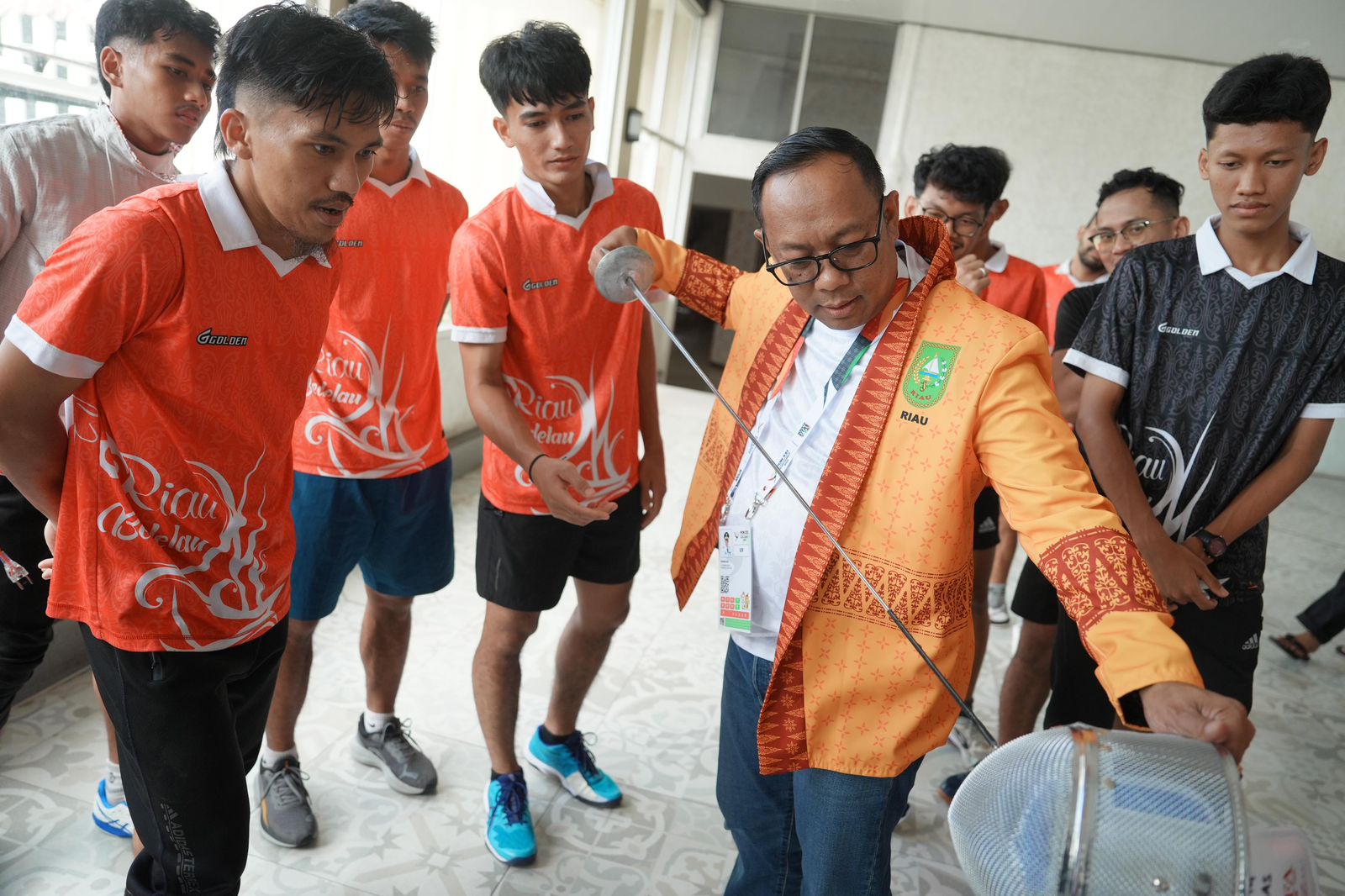 Riaumandiri.co - Pj Gubernur Riau, Rahman Hadi, memotivasi atlet-atlet Riau sebelum menjalani pertandingan cabang olahraga Anggar, pada PON XXI Aceh-Sumut.