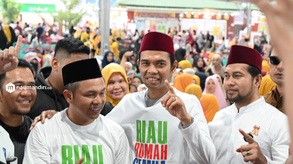 RIAUMANDIRI.CO - Calon Gubernur Riau, Abdul Wahid, bersama Ustaz Abdul Somad (UAS) menggelar diskusi 'Abdul Bertanya Abdul menjawab' yang mengangkat tema "Peran Ibu dalam mendidik anak", di Hall Riau Garden, Pekanbaru, Ahad (29/9/2024).