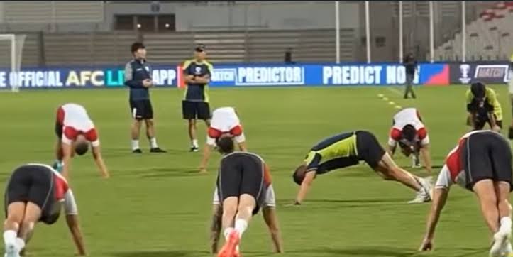 Pelatih kepala Shin Tae-yong pun membagi sesi latihan pagi itu menjadi dua kelompok, yakni kelompok pemain yang tampil saat Timnas Indonesia melawan Bahrain dan kelompok yang tidak bermain.