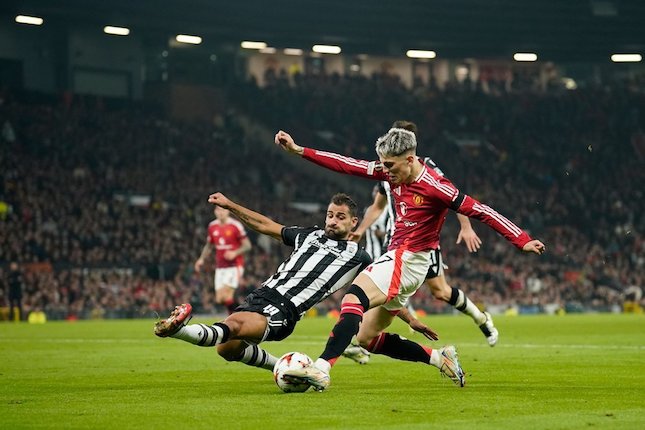 Peluang bagus MU ada di menit ke-18. Rasmus Hojlund melepaskan sundulan, tapi bola masih mengarah tepat ke kiper Dominik Kotarski.