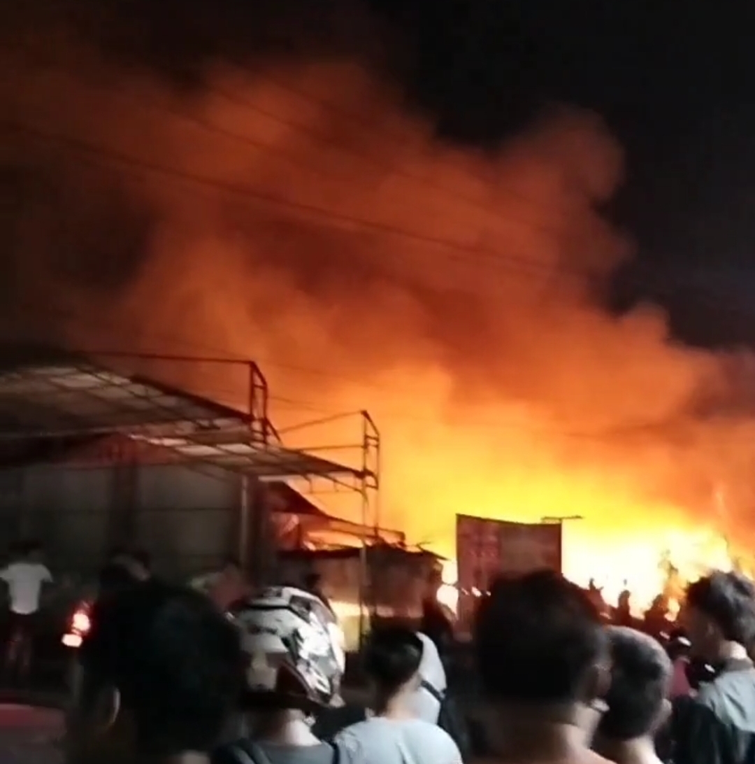 Riaumandiri.co - Danton Pleton Jaya Pemadam Kebakaran, Dulkamar menyebutkan kebakaran hebat di Jalan Bakti menghanguskan 10 bangunan diantaranya 7 kios semi permanen dan 3 kios permanen.