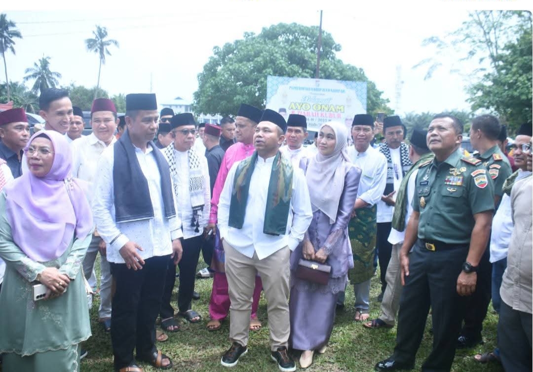 Riaumandiri.co - Bupati Kampar, Ahmad Yuzar menyambut kedatangan Gubernur Riau, Abdul Wahid, dalam rangkaian kegiatan Ziarah Kubur Aghi Ayo Onam 1446 H yang dilaksanakan di Kampung Godang, Desa Pulau Lawas, Kecamatan Bangkinang, Kabupaten Kampar, Senin (7/4).