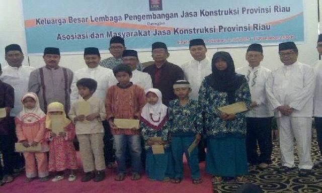 Aswandi juga mengungkapkan bahwa pengurus dan karyawan LPJK Provinsi Riau dalam setahun ini menyisihkan sebagian rezekinya untuk berbagi bersama anak yatim yang ada di Provinsi Riau. "Dalam setahun menyisihkan sebagian rezeki pengurus dan karyawan LPJK, terkumpul Rp2,4 juta yang diserahkan kepada anak yatim. Mudah-mudahan bantuan yang kami berikan ini menjadi penyemangat bagi anak-anak yatim untuk menjalankan ibadah puasa dan menyongsong Lebaran Idul Fitri yang akan segera tiba," ujarnya.