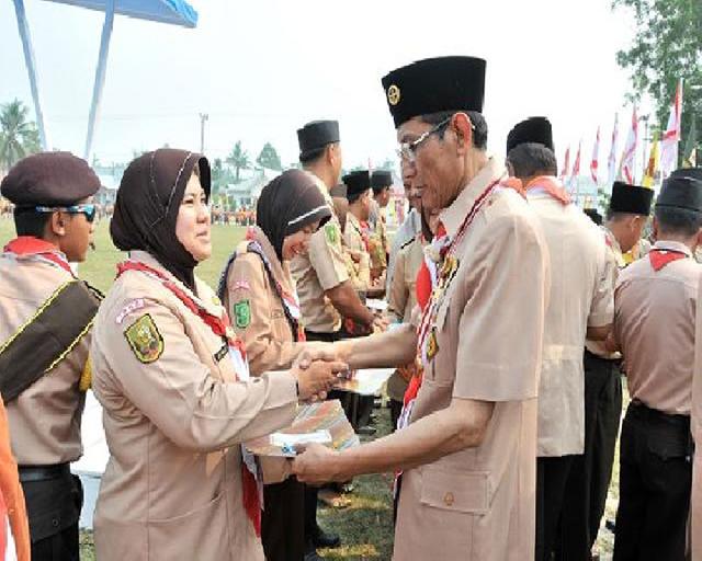 "Kepada seluruh anggota Kwarcab, Kwaran, serta para pembina pramuka gugus depan bersama meningkatkan kualitas gugus depan sebagai wahana pendidikan pembentukan karakter generasi muda yang lebih baik,"ucapnya.