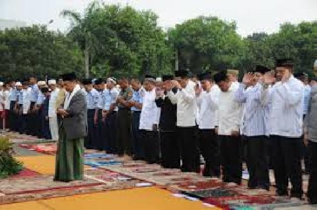 Kabut asap ketika pelaksanaan Salat Idul Adha, juga dirasakan warga Wadya Graha 1, Panam. Beberapa jamaah terlihat menggunakan masker, untuk melindungi diri dari kabut asap yang cukup tebal pagi itu. ***