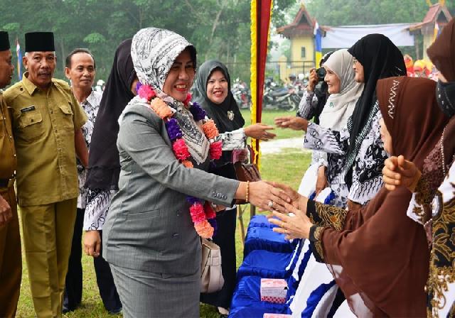Satu yang patut kita contoh yaitu lahan pembangunan sekolah tersebut merupakan hibah dari masyarakat setempat, demikian besar keinginan masyarakat dalam memajukan pendidikan,” tutur Eva Yuliana yang juga ketua TP PKK Kabupaten Kampar dan anggota DPRD Provinsi Riau ini.